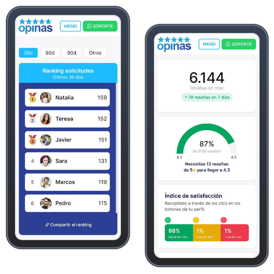 Con nuestra app para iOS y Android podrás revisar tu evolución en Google, responder reseñas fácilmente con ayuda de la inteligencia artificial y recibir notificaciones sobre cambios importantes en tu nota media o movimientos de tus competidores.